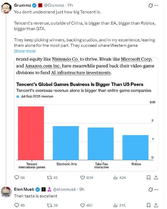 腾讯在中国以外的收入超过艺电,超过Roblox,超过GTA。