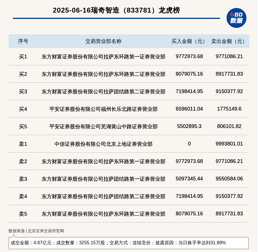 目前市场上好的配资公司 北交所上市公司瑞奇智造登龙虎榜: 当日换手率达到31.89%